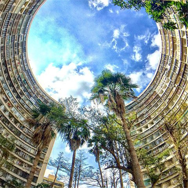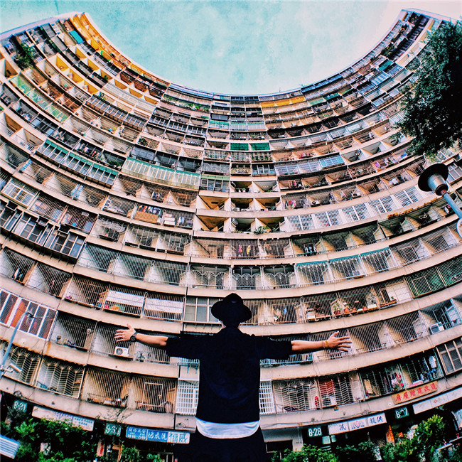 這裡是一處集合式國民住宅群,13座公寓大樓緊鄰而建,密集的建築讓人好像仿佛有種來到小香港的錯覺,站在社區公園中央,抬頭仰望,看到的是圓形的湛藍天空,在這裡拍照有一種美好的意境,每一張照片都像是訴說著一個故事,折射著每戶人家的日常。