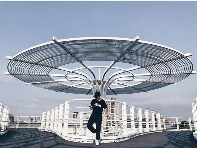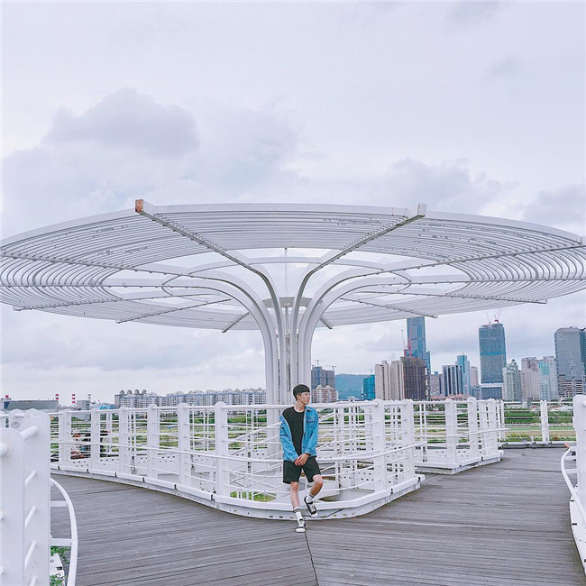前鎮之星是一座跨越交通又兼具景觀地表的自行車橋,白色彎曲的線條藝術感超強,在上面騎自行車、散步都超有意境,站在上層的觀景台,高雄的美景盡收眼底,尤其到了晚上,華燈初上,更是閃耀動人。不管是白天還是晚上,都很適合拍照。