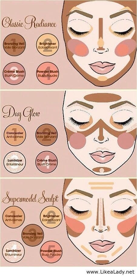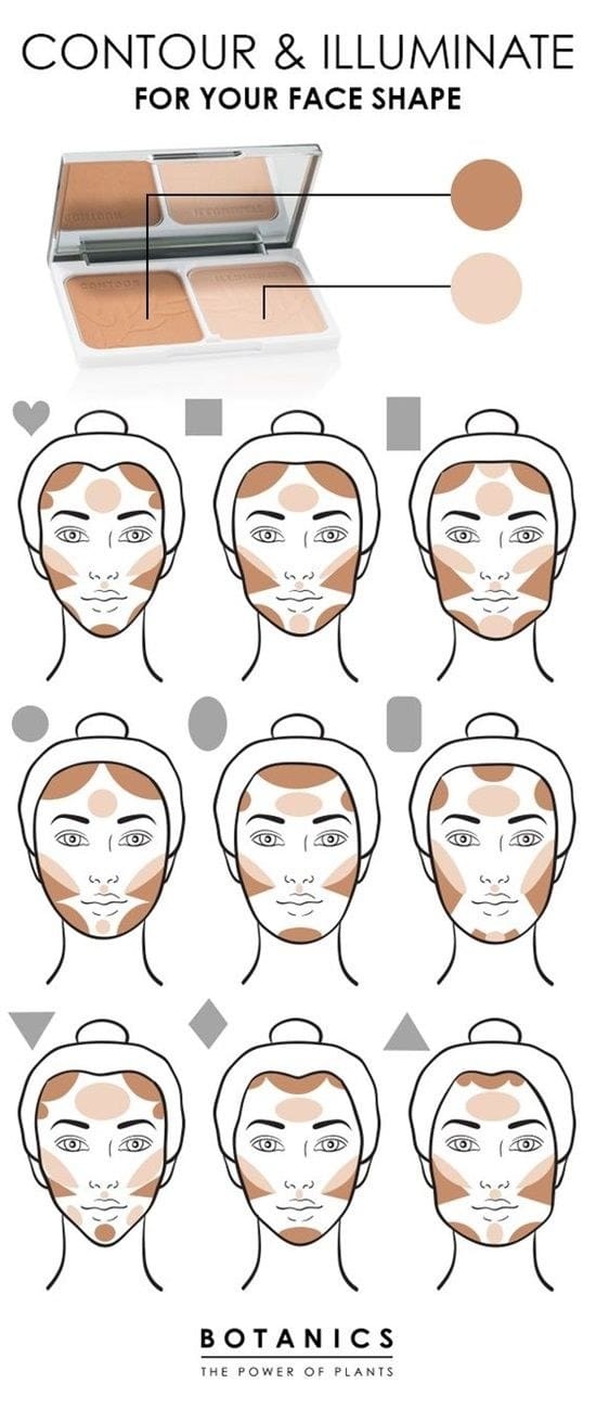 ▼根據臉型修容,不同臉型的陰影方式是不一樣的。