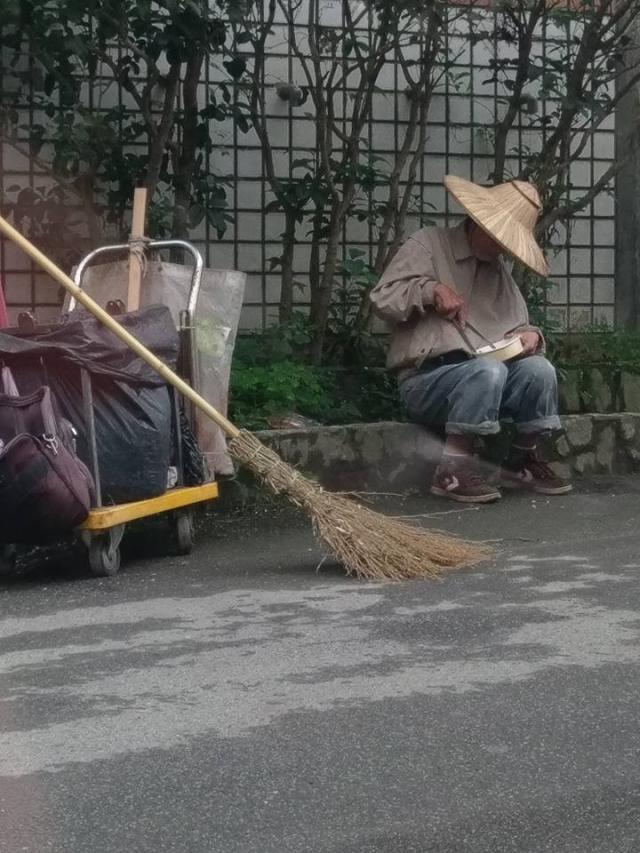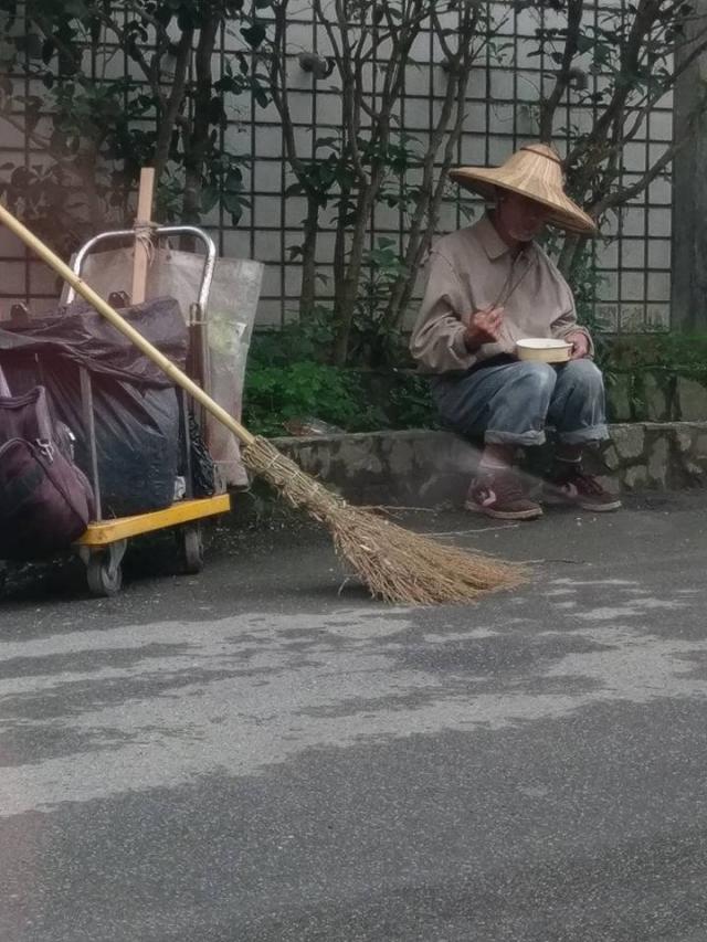 2017年12月09日清道夫是街上那「默默的一群」,沒有他們,我們就不可能有整齊乾淨的市容。在寒流來襲的冷天裡,網友就看到路邊清道夫似乎是為了趕時間,直接拿「夾垃圾的夾子」吃飯,其他人都敬重說:「辛苦了!」