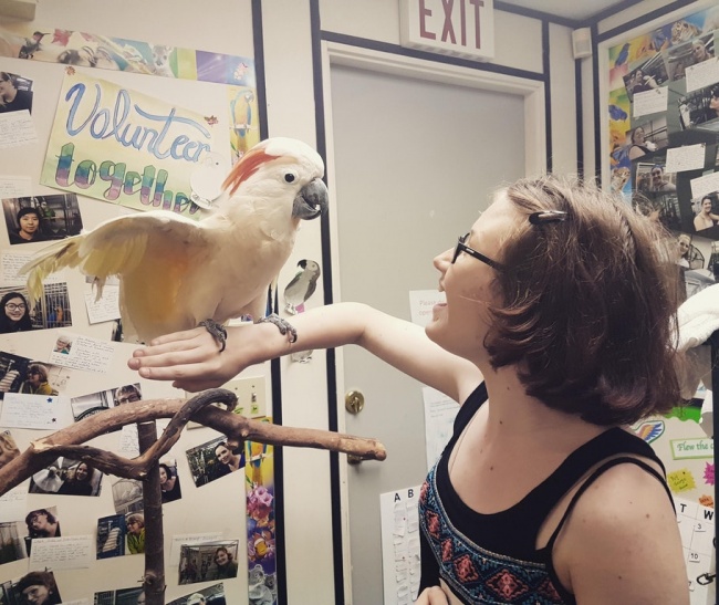 ▼11.生命中的第一個朋友-「我從沒看過我自閉症的妹妹笑的那麼開心過,她總算有朋友了,這隻鸚鵡的名字叫咪咪。」