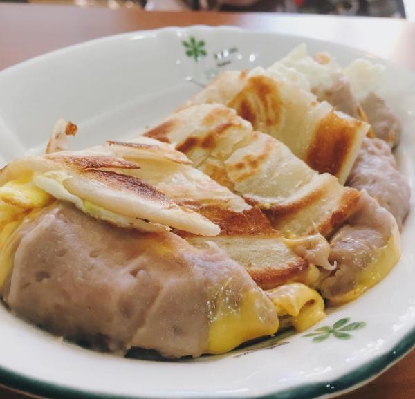 看一眼就要口水直流的蛋餅,在板橋的一家2個蛋早餐店出售,這款節日限定版芋泥蛋餅更是經久不衰,日常會有香芋起司蛋吐司、雙芋夾心蛋餅,每一款都回味無窮。