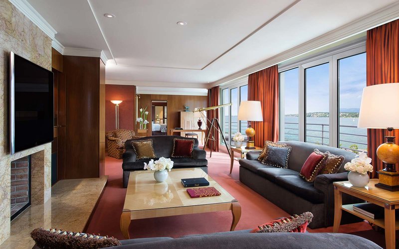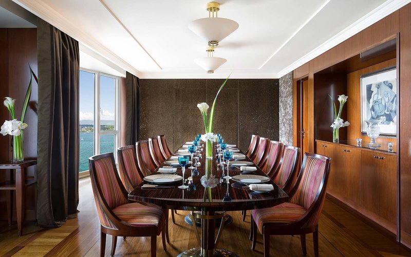 ▼這間酒店最豪華的套房位於頂樓8樓,整層樓只有這一間套房,裡面附有12間臥室,面積約為505坪,這也是歐洲最大的套房。從落地窗可以看到日內瓦湖的美麗景色,私人管家和廚師還會提供最貼心的服務。