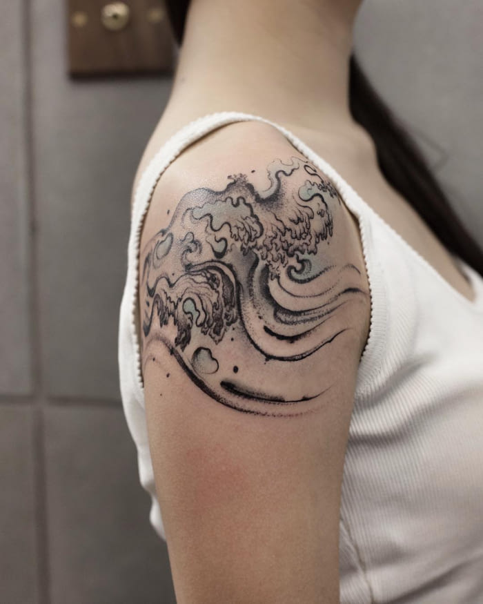 ▼水墨畫刺青可以色彩斑斕,也可以清新淡雅,整個圖案很有韻味。