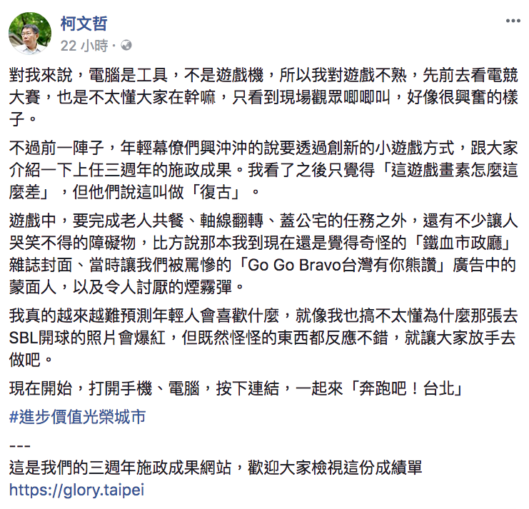 想要玩這款遊戲的話可以點這裡,大家一起來玩遊戲順便看看柯P上任這3年來的所做的事情吧!