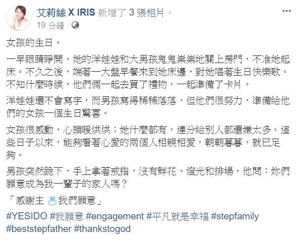 艾莉絲上個月才說有男朋友 現在就閃電宣布再婚「答應嫁給老外」