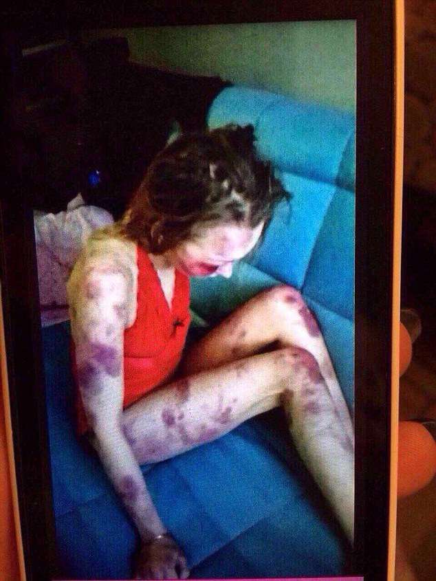 ▼照片中的Anastasia全身都是青紫傷痕,穿著紅色衣服坐在沙發上,看起來很無助。她被送到醫院時多處骨折、內出血,隨後陷入昏迷,6天後不治身亡。