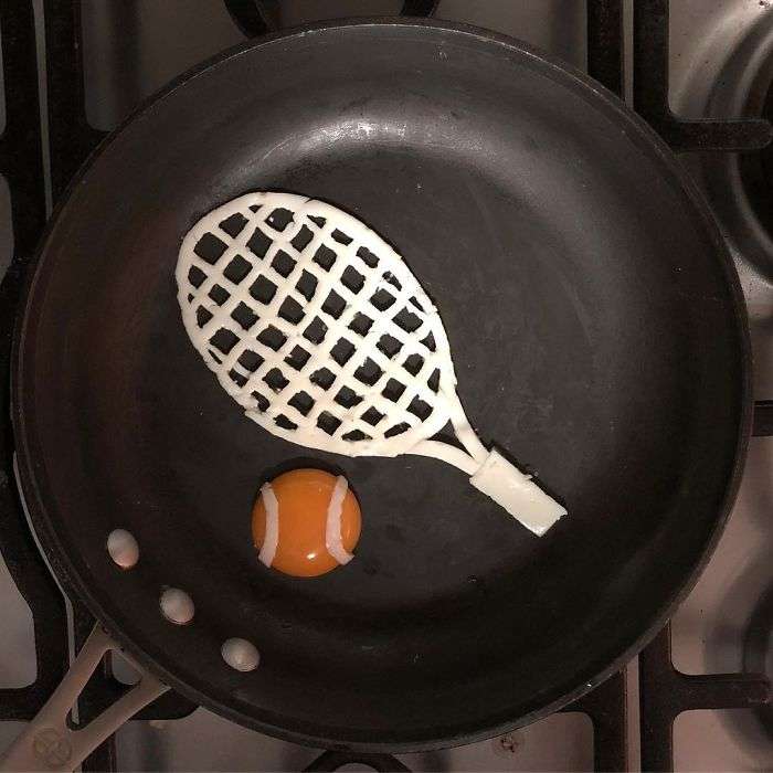 ▼他配合使用餐刀,把煎蛋變成了豐富的模樣。除了在煎蛋中加入流行文化元素,他還打造了梵谷的名作。