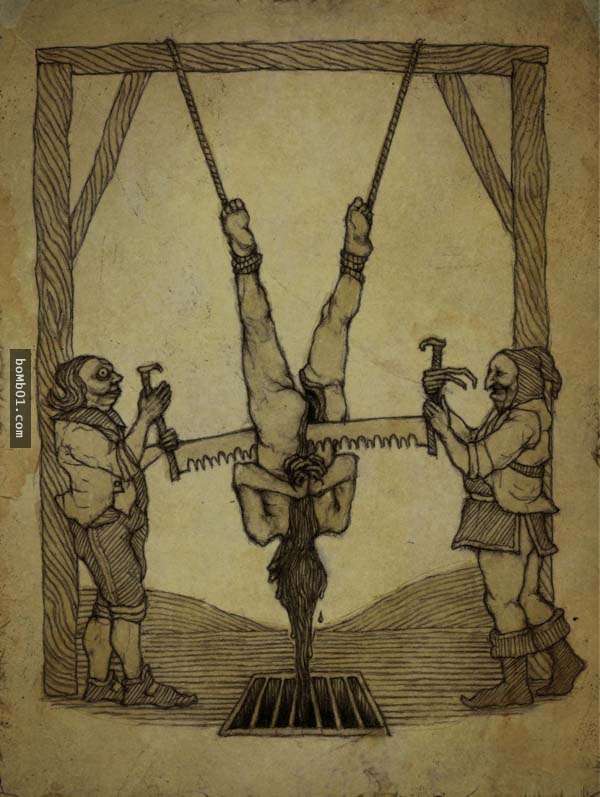 ▼11.鋸:鋸是被廣泛使用的刑具,這件工具在任何房子裡都能找到。把人倒掛起來,從而使他們在整個過程中保持清醒,然後鋸開他,場面血淋淋的。
