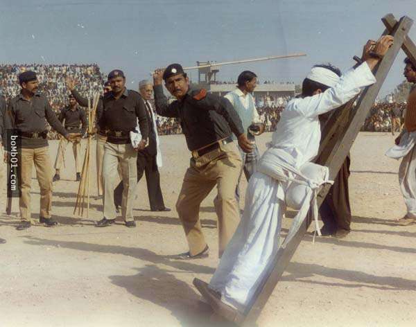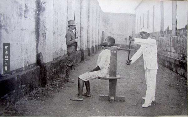 ▼16.頸手枷:這是為了公開羞辱罪犯,有時圍觀的人會把他們折磨致死。大多數時候,罪犯還會同時受鞭刑。