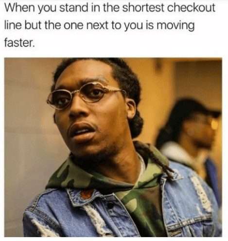 ▼「排隊結帳時你選較短的隊伍,結果發現隔壁隊伍比較快。」