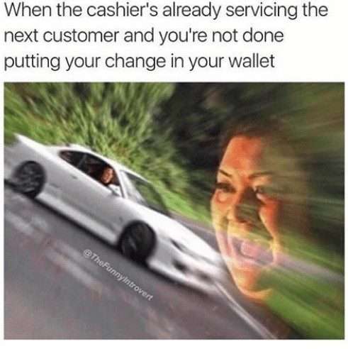 ▼「收銀員已經開始幫下一位客人結帳,你的零錢還沒收進錢包。」