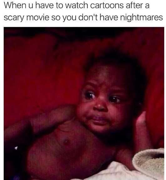 ▼「看完恐怖片你得看卡通才不會做噩夢。」