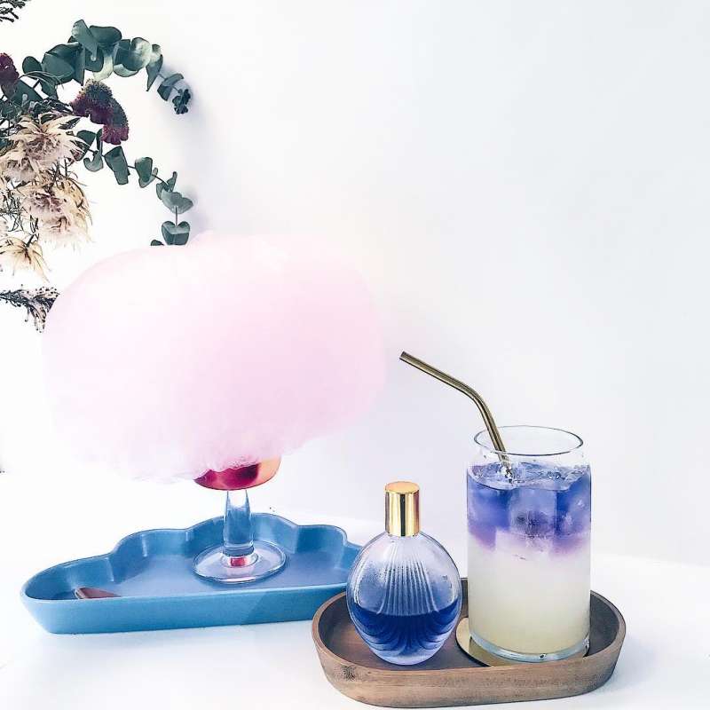 ▼喝一杯蝶豆花製成的「愛情靈藥」,吃一口甜蜜的「棉花糖」,下午茶時光就是要輕鬆愉快。