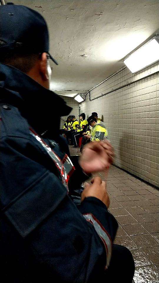2018年01月13日天氣嚴寒,但還是有很多人得待在戶外工作。台灣警察權益平等協會副理事長高振修就貼出一張照片,畫面顯示警察為了來維持抗議人潮的秩序,得在冷天裡穿雨衣睡地下道,令無數網友不捨。