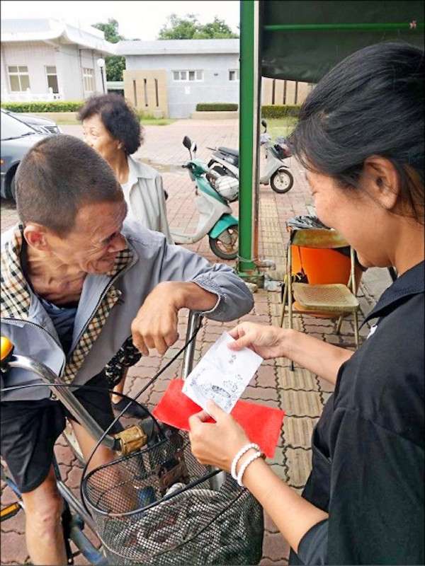 ▼不過就在2016年中旬,許書誠發現很久都沒看到李唯禎,擔心打聽下才知道她的丈夫重病過世。許書誠也堅持騎三輪車到殯儀館,特別拿出一包2100元的奠儀,希望她能節哀。