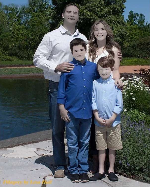 ▼這就是 Pam 一家人拍攝的全家福照片了!等等,這後製是怎麼回事?