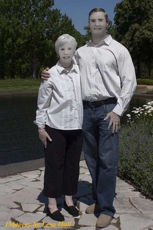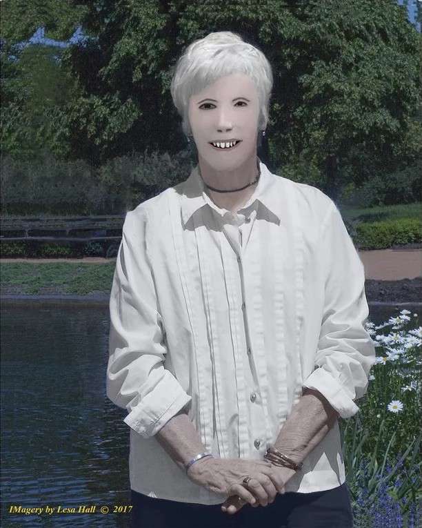 ▼根據 Pam 的描述,這名攝影師 Lesa Hall 認為陽光太亮照成臉上的陰影很難看,可是她的教授沒有教她如何修陰影的部分,於是她自己就修成這個樣子了。