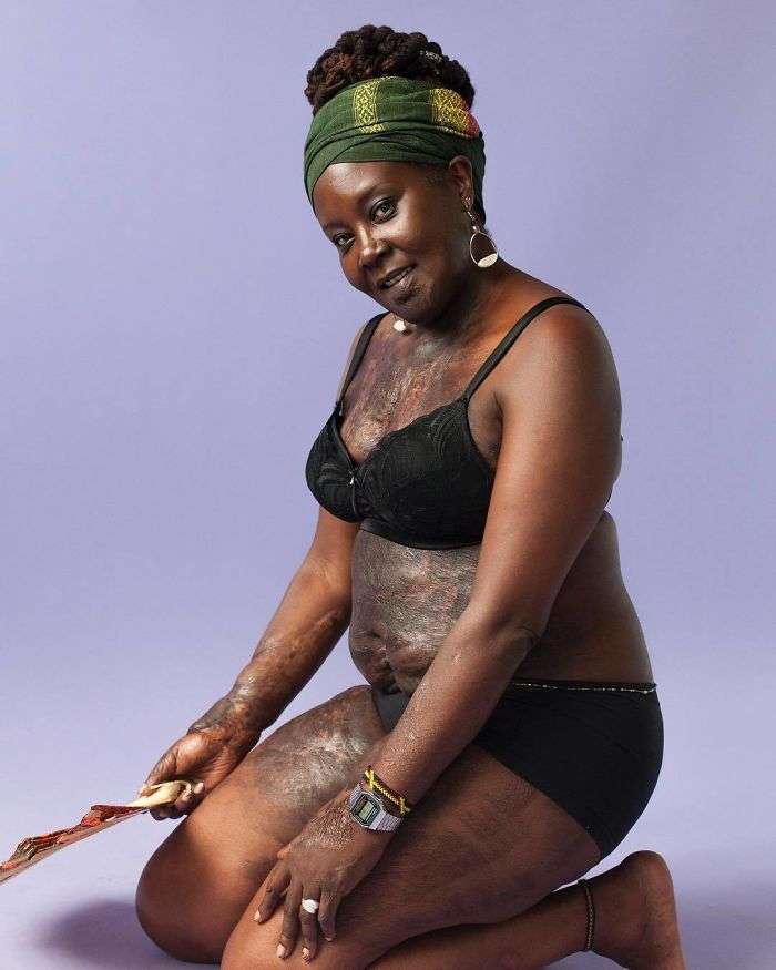Mercy在29歲經歷了一場因為家暴而引起的火災,雖然這麼多年是一個艱難的旅程,但是她認為是傷疤成就了今天的自己,它們是寶貴的「裝飾」,她慶幸自己活了下來,她希望自己的照片能夠幫助到其他同樣遭遇的人。