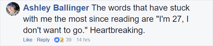 ▼「讀到『我今年才27歲,真的不想死』的時候,有一種如鯁在喉的感覺,心碎了。」