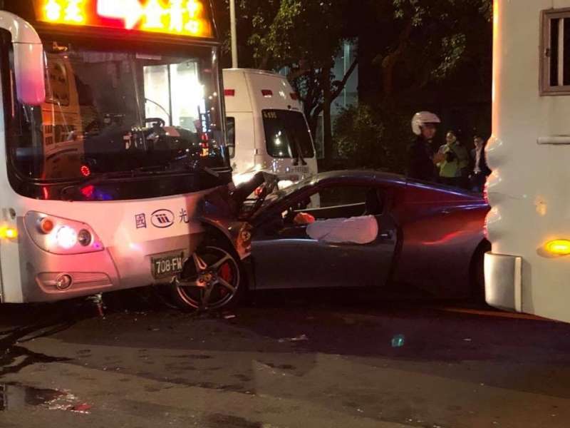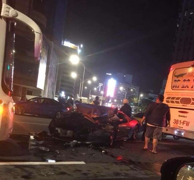 2018年01月20日日前,一輛價值1400萬的法拉利在信義區高速轉彎,直接迎頭撞上兩輛國光客運。法拉利車頭撞爛,畫面相當驚悚,索性無人傷亡。事發後,法拉利車主下車,一看竟是年僅21歲的大學生,旁邊還帶了一個妹!