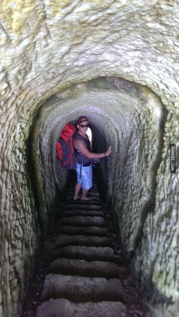▼砂岩隧道外總共72個台階,簡直太酷了。