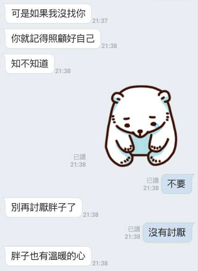 原PO猜測他應該快動手術了,男孩還對她說,雖然手術風險低,但也有可能醒不來,「如果我沒找妳,妳就記得照顧好自己」,甚至還說「別再討厭胖子了,胖子也有溫暖的心」,讓原PO非常心疼,覺得沒辦法陪在他身邊,看著手機難受地落下淚來。