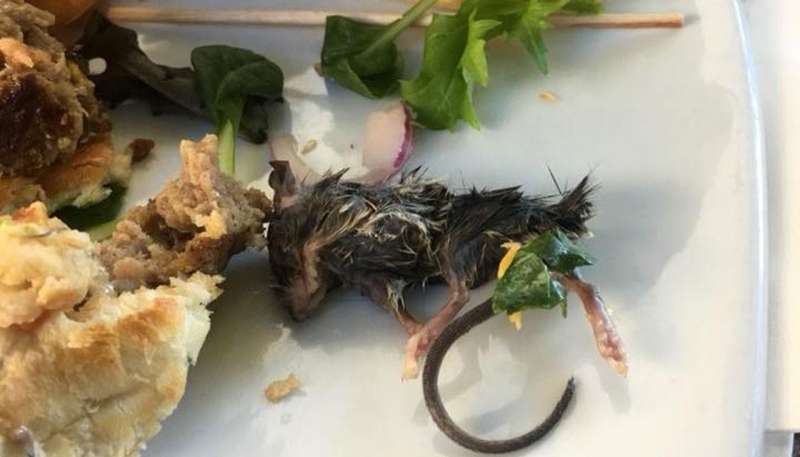 ▼男子和妻子原本和朋友一起吃午餐慶祝,結果吃到一半再也沒有食慾。妻子把有老鼠的食物照片上傳到臉書上,很快引起了網友的關注。
