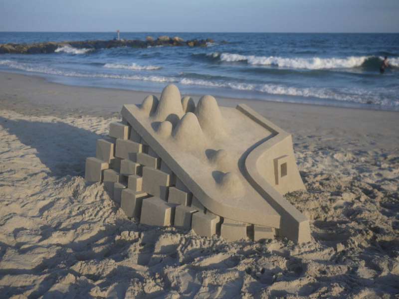 ▼當然,時間不允許他無限在沙灘上建造他的雕塑,每當夜幕降臨,海水漲潮,他的作品就會被海水吞噬。