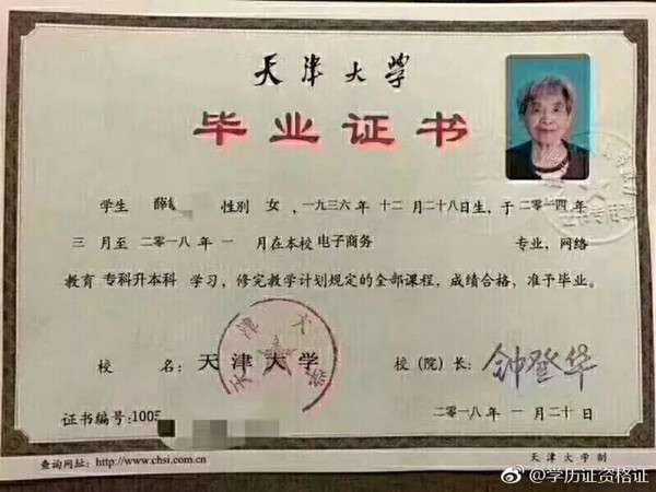 ▼81歲的薛敏修老奶奶2014年考上天津大學的電子商務專業就讀,4年後順利畢業,還精通英語、法語、俄語、拉丁語4種外語,這位「高齡學霸」也令所有人嘆服不已!