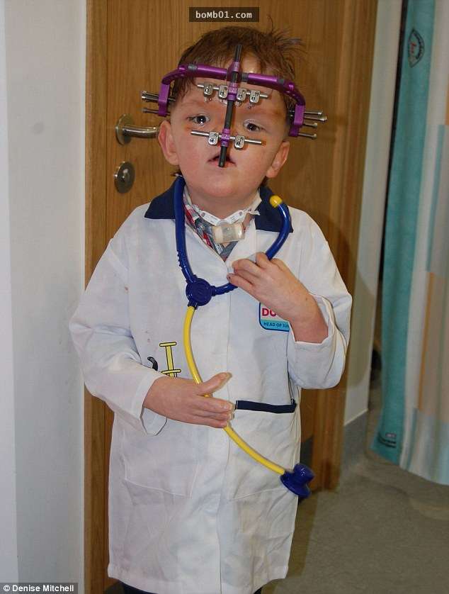 小男孩天生臉部畸形「靠支架矯正」 50次重建手術後他微笑:我愛我的新造型!