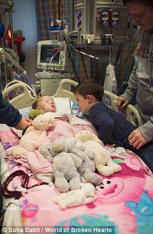 ▼Adalynn的哥哥來向妹妹道別,因為他知道這是最後一次見到她了。
