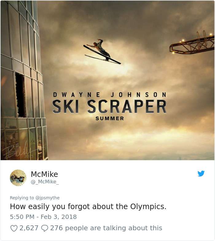 2018年02月08日電影海報可以說是影響票房十分重要的因素之一,有些人沒看過預告片,到了電影院時就會以海報作為選擇的標準。近日好萊塢電影《摩天大樓》的官方釋出了一張前導海報,竟引起了許多網友的熱議。