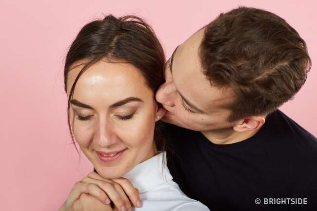 耳朵是人體最敏感的部位之一,親吻耳朵就像對情人搔癢,可以讓對咯咯發笑~