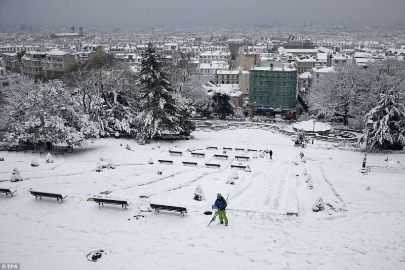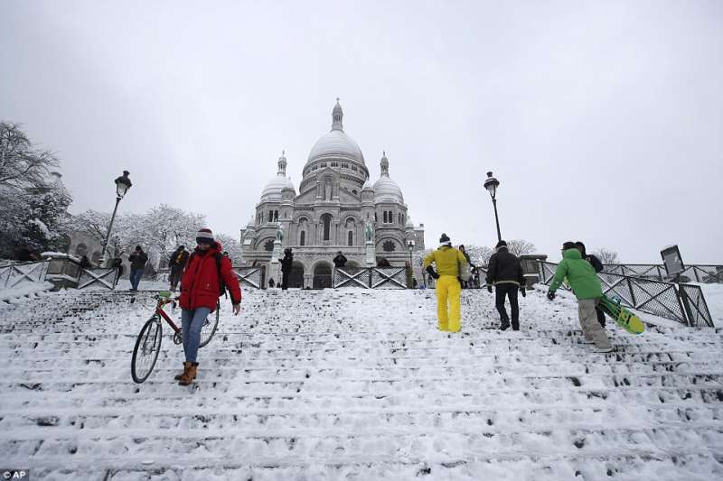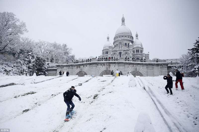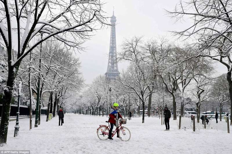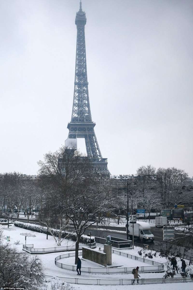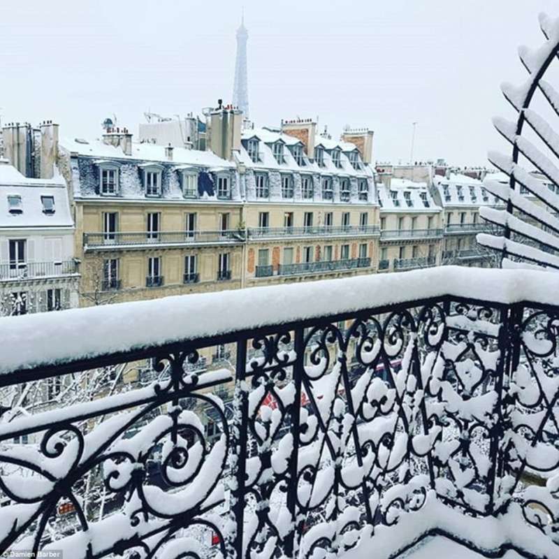 2018年02月09日幾天前,巴黎迎來了一場30年一見的大雪。一夜過後,積雪達到17.8公分,聖心聖殿、艾菲爾鐵塔等等地標建築都蒙上了一層白雪,整座城市一片白,看起來非常美。