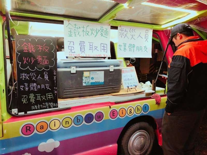 ▼許多救災人員、媒體記者都已經在現場待了很久,對於這些善心人士提供的免費食物都感動不已,「已經18多個小時沒休息,撐過這黃金72小時就好」。
