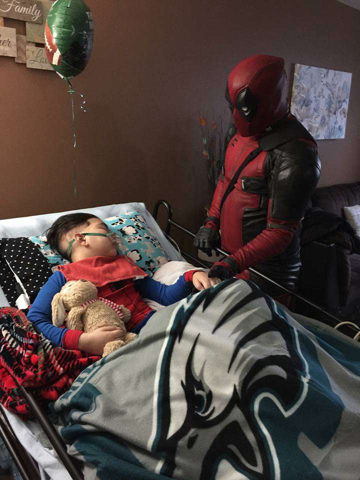 ▼這位死侍Coser在個人臉書上敘述了這段故事,當時他收到慈善機構「Cosplay Care」的募款人狂call,接起電話後,才知道小男孩托尼(Tony)的故事。這位年僅11歲的小男孩得了腦癌,他的家人本來計劃在禮拜六為他準備個活動,但托尼的病況急速惡化,家人擔心他可能撐不到禮拜六了。