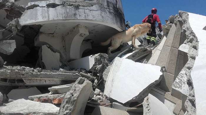 ▼2016年4月17日,南美厄瓜多發生規模7.8的地震,導致600多人死亡。當時4歲的拉布拉多Dayko就是被派到現場的搜救犬。
