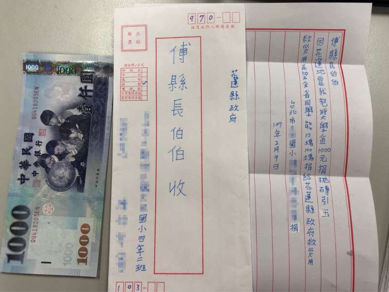 他們在信上註明了2次「救災用」,希望自己的愛心能幫助到真正有需要的人,同時也呼籲全省同學能夠「10塊、100塊」捐給花蓮縣政府。縣府收到這封信後,忍不住表示「揪感心」,還不停誇讚兩名小朋友很懂事。