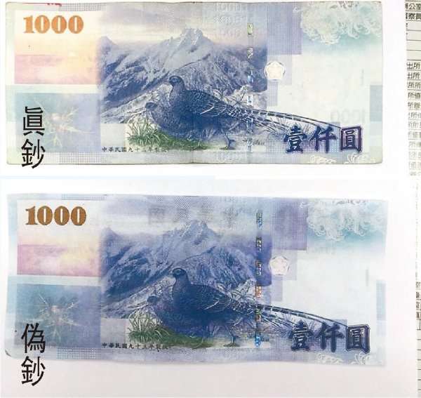 ▼警方也提醒民眾,只要稍加注意就能辨別千元鈔票的真假,首先真鈔有光影變化箔膜具變色功能,假鈔無;真鈔防偽條與鈔券密合,假鈔用貼紙,手指觸感平整度不同;真鈔面額阿拉伯數字金色變綠色,假鈔無法變色;真鈔千元浮水印字樣明顯,假鈔平淺模糊;如果真的感覺自己無法辨識,可以考慮使用驗鈔機。