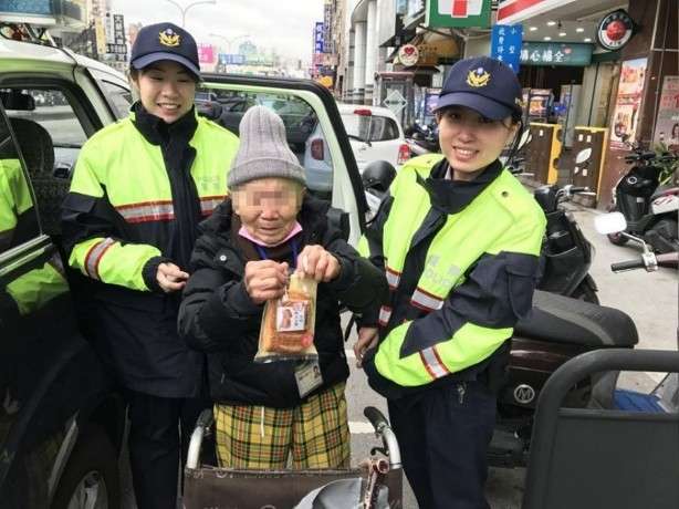 ▼台中市政府警察局第二分局文正派出所的警員李蔓姿、徐日進,於警專實習生張巧穎在2月5日下午3點多在北區五義街巡邏時,發現人行道上有個阿嬤獨自靠著輪椅坐在路邊休息,於是主動上前關心,才發現這名80幾歲的蘇姓阿嬤因為天氣寒冷導致她體力快速流失,也出現了失溫現象讓她只能在路邊休息。