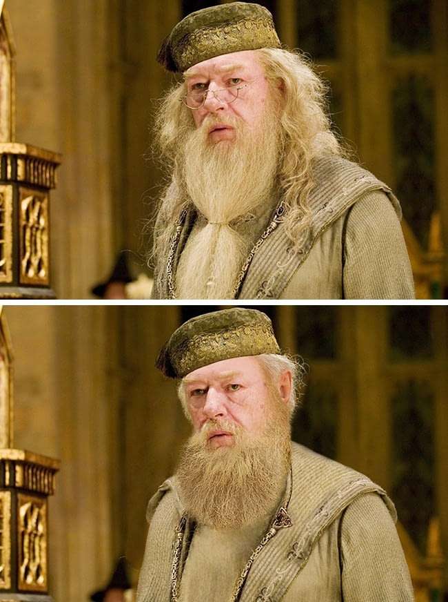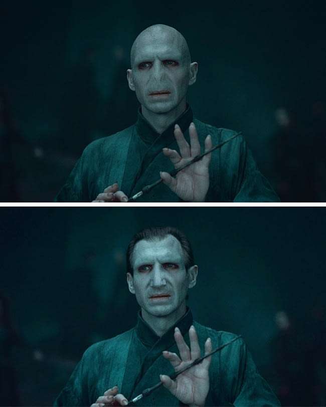 ▼佛地魔換上中規中矩的髮型,還有鼻子,變身「一本正經」的教授。