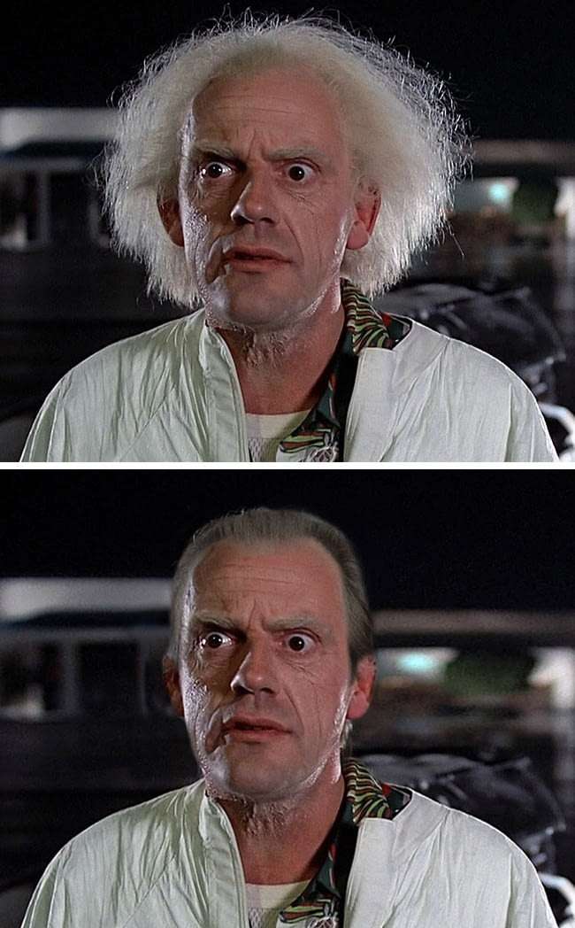 ▼沒有了未來感髮型的布朗博士也回不到未來了。