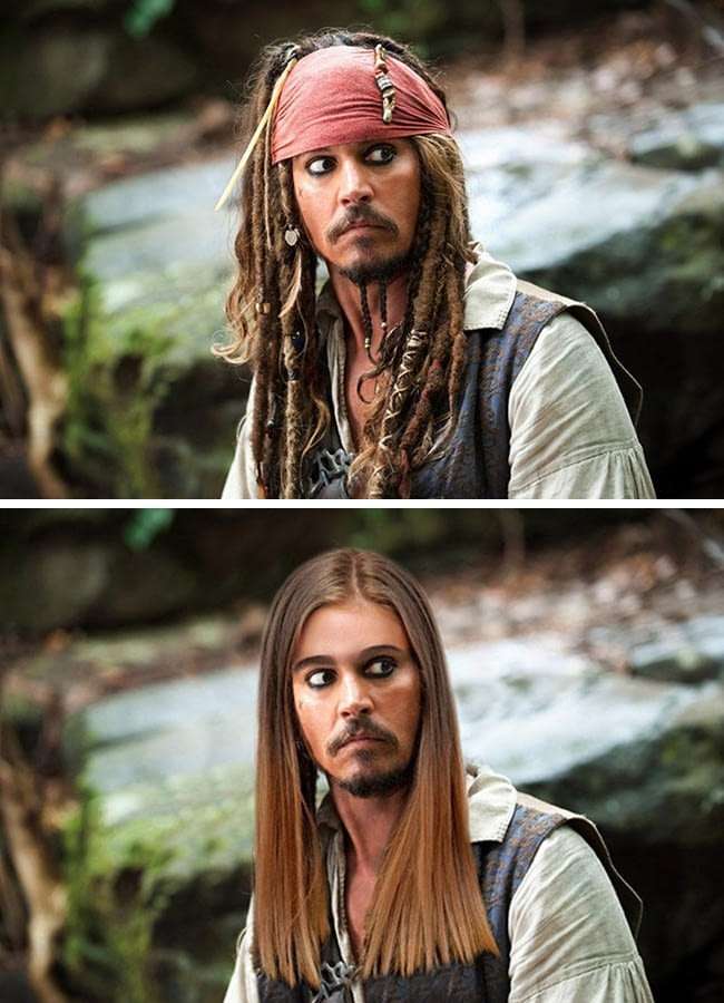 ▼傑克船長換上一頭溫柔的直髮,完全就是顛覆審美的「變態大叔」。