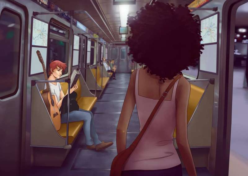 ▼「40分鐘的車程,一直期待他注意到我……為什麼是現在!為什麼偏偏在我要下車的時候他抬起頭來啊!如果我現在下車的話,可能再也見不到他了!但如果我留下來再坐一站,他會不會覺得我很奇怪?應該會吧……我如果去問他要電話號碼,他會覺得我很隨便嗎?啊,為什麼可愛的男孩子總是很忙或者在看書…啊,不管了,我要下車了,可是我真的不想!」