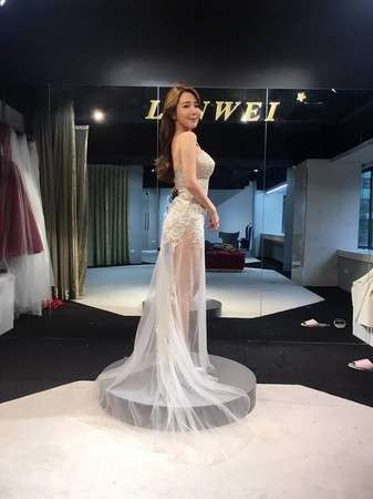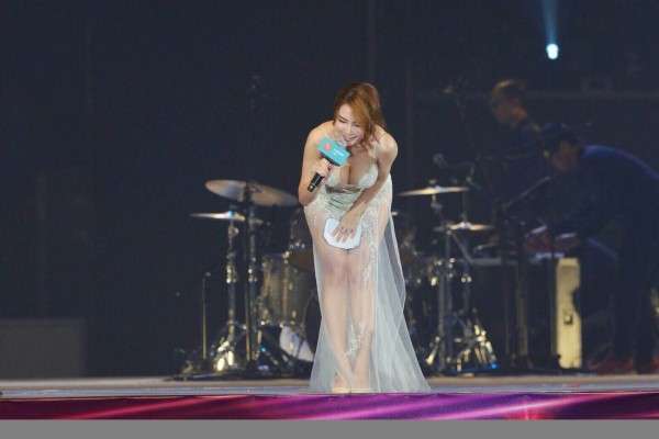 ▼寰宇新聞台主播朱琦郁受邀主持尾牙,身穿薄紗禮服,露出滿滿的事業線。主持到一半,更彎腰致意,讓大家一飽眼福,因此被譽為「倒奶主播」。