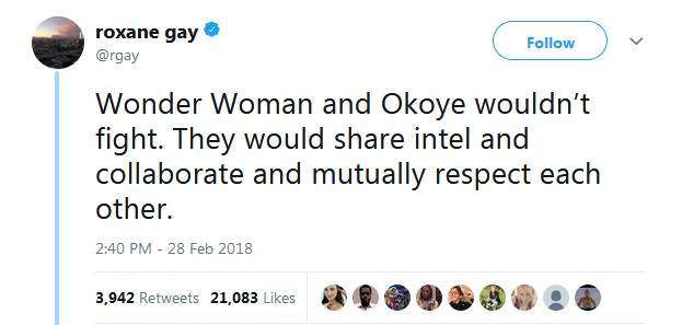 ▼這個問題的討論度太高,漫威《黑豹》衍生漫畫「World of Wakanda」的編劇Roxane Gay都注意到了,她的回答是:「神力女超人跟Okoye才不會打起來,她們會分享資訊互相合作,而且尊重對方。」