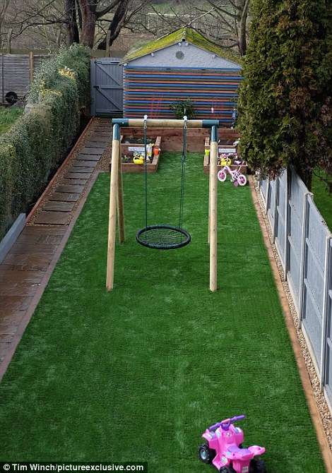 ▼為了讓小孩盡情玩樂,他們在後院加裝上了草皮。