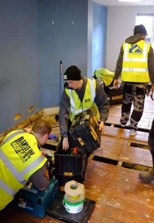 ▼就在這個時候,一個有全英國數十位建築工人、水管工、電工所組成,名為「建設者樂隊」(Band of Builder)的團隊找了上門,原來他們想要免費幫卡爾改造他們的房子。