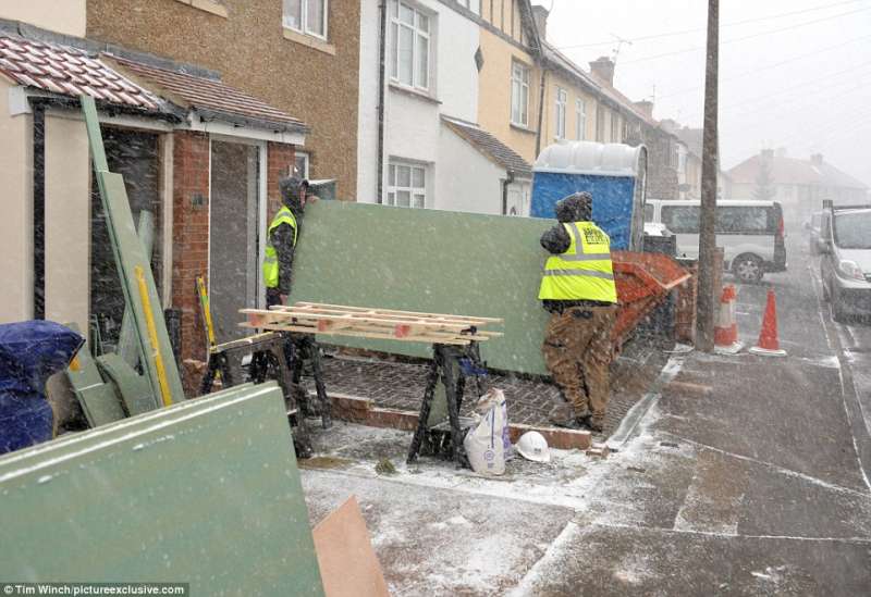 ▼剛好就在他們動工的這幾天,英國遭遇了嚴重的寒流來襲,天氣非常寒冷,不過他們也沒有因此而停下手邊的工作。